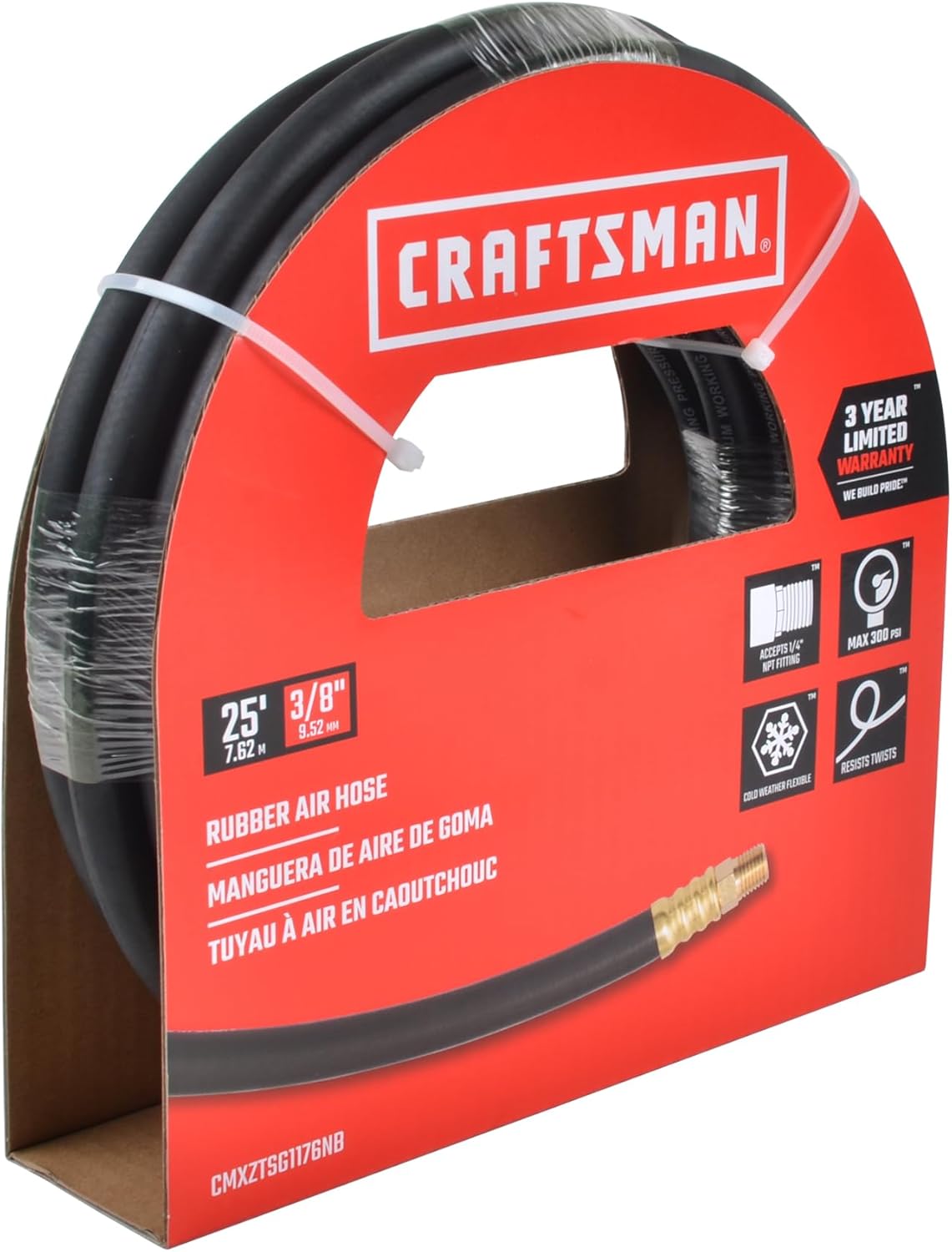 | Item Type Name | CRAFTSMAN 3/8-in x 25-ft Rubber Air Hose, 300 PSI, Oil and Abrasion-Resistant, Flexible in Cold Weather |