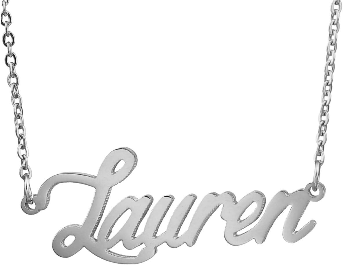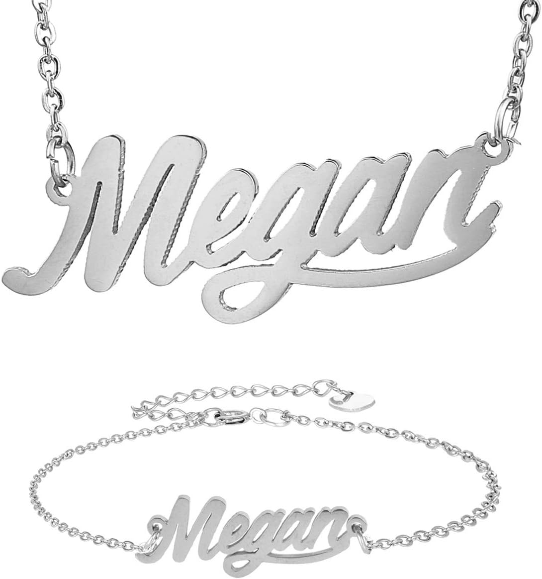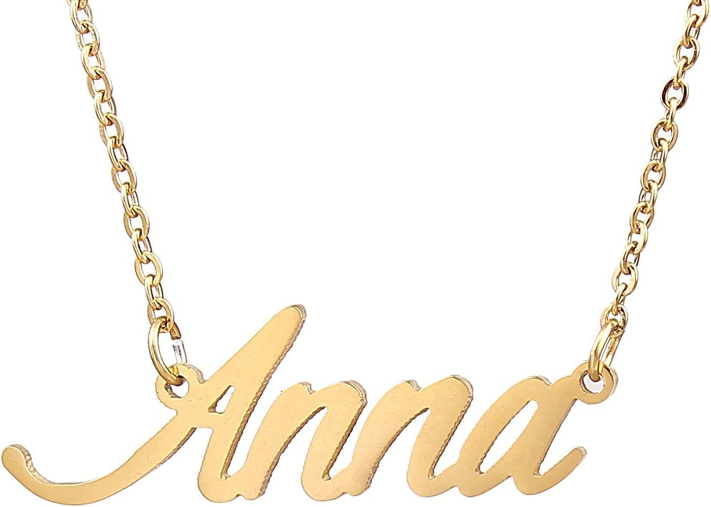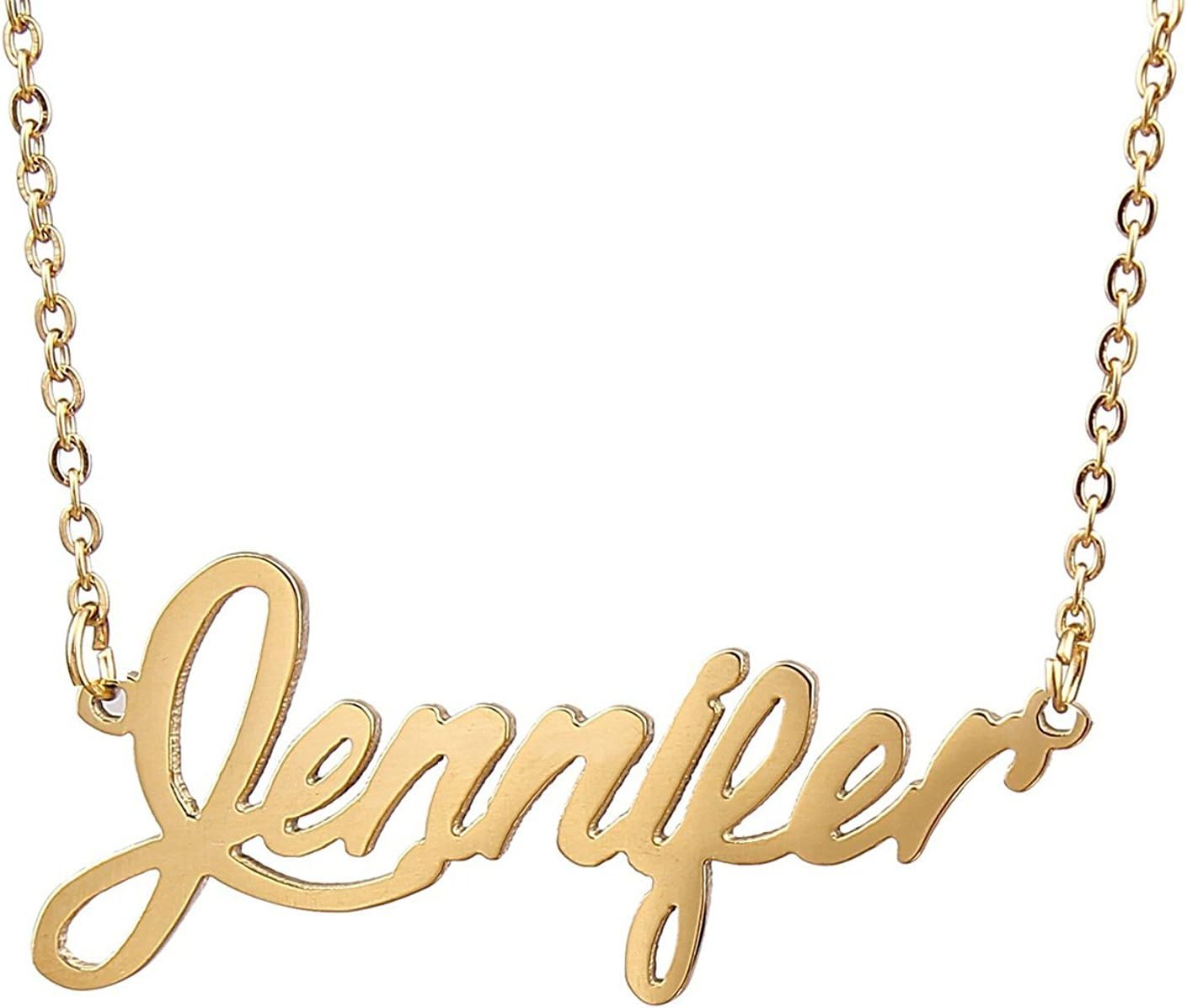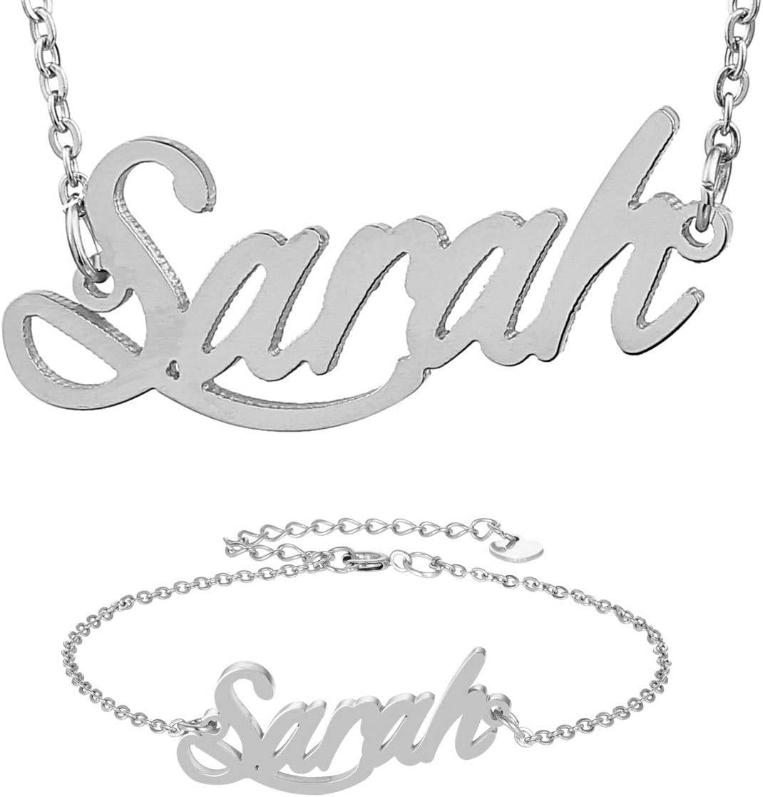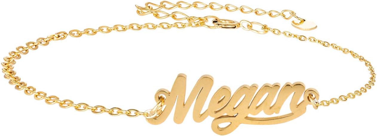 Specific Name Word in Golden Silver Color, Danity and Lightweight. Great gifts for best friends, mom, sister, grandaughter, cousin, wife, girlfriends. Product Details: Material: Stainless Steel, 18k Gold Plated. Chain length: 16" + 2" extension chain. Weight: 5-10 grams. Made in China.