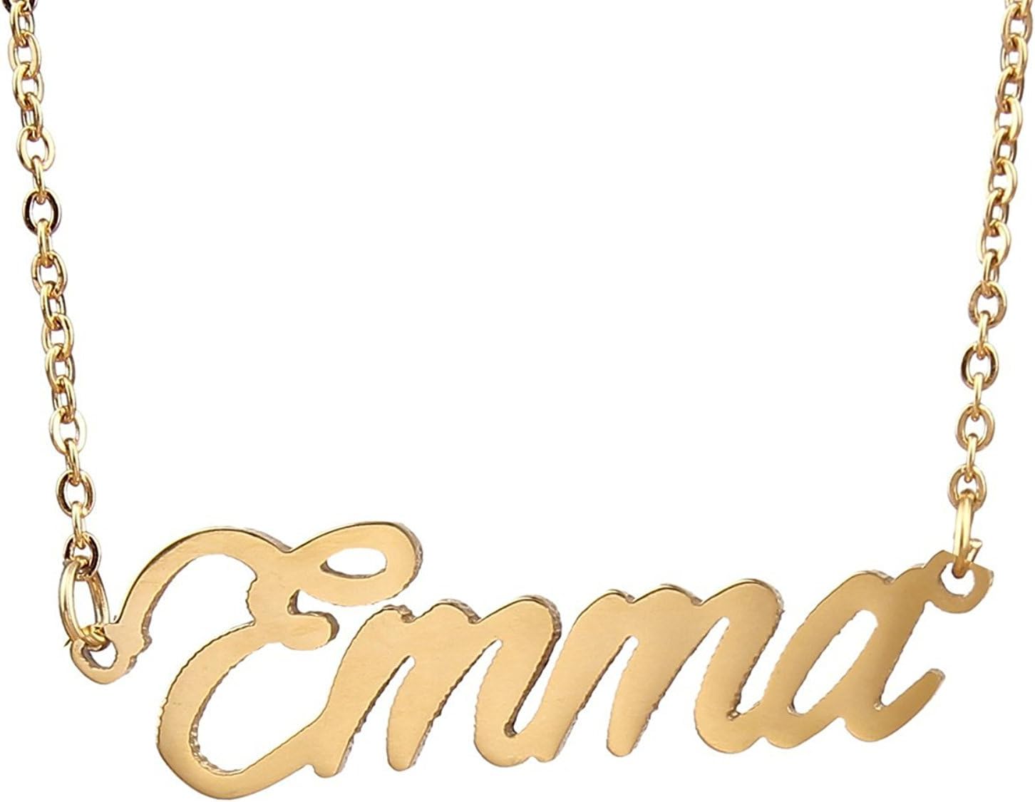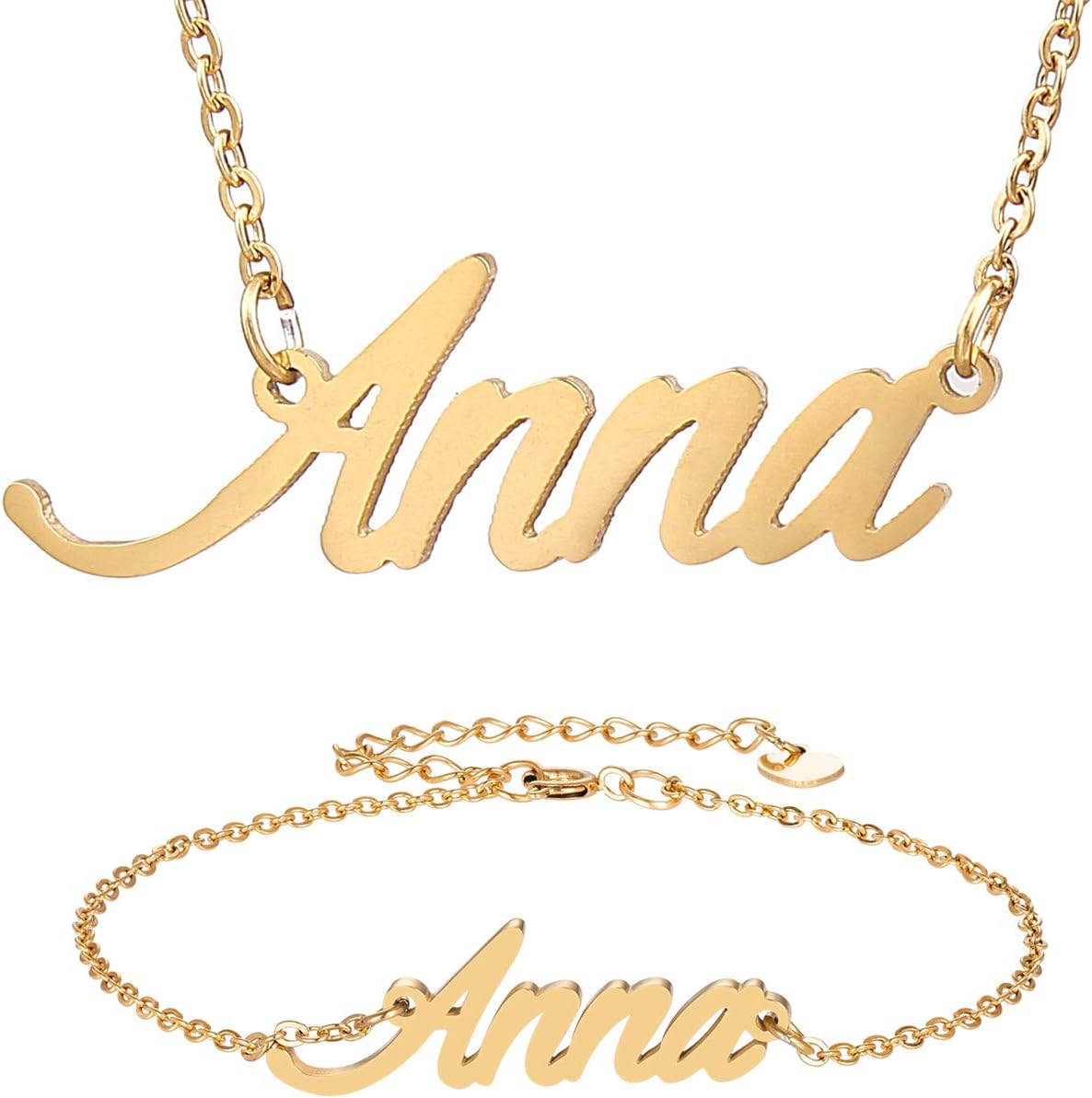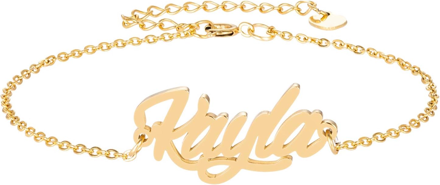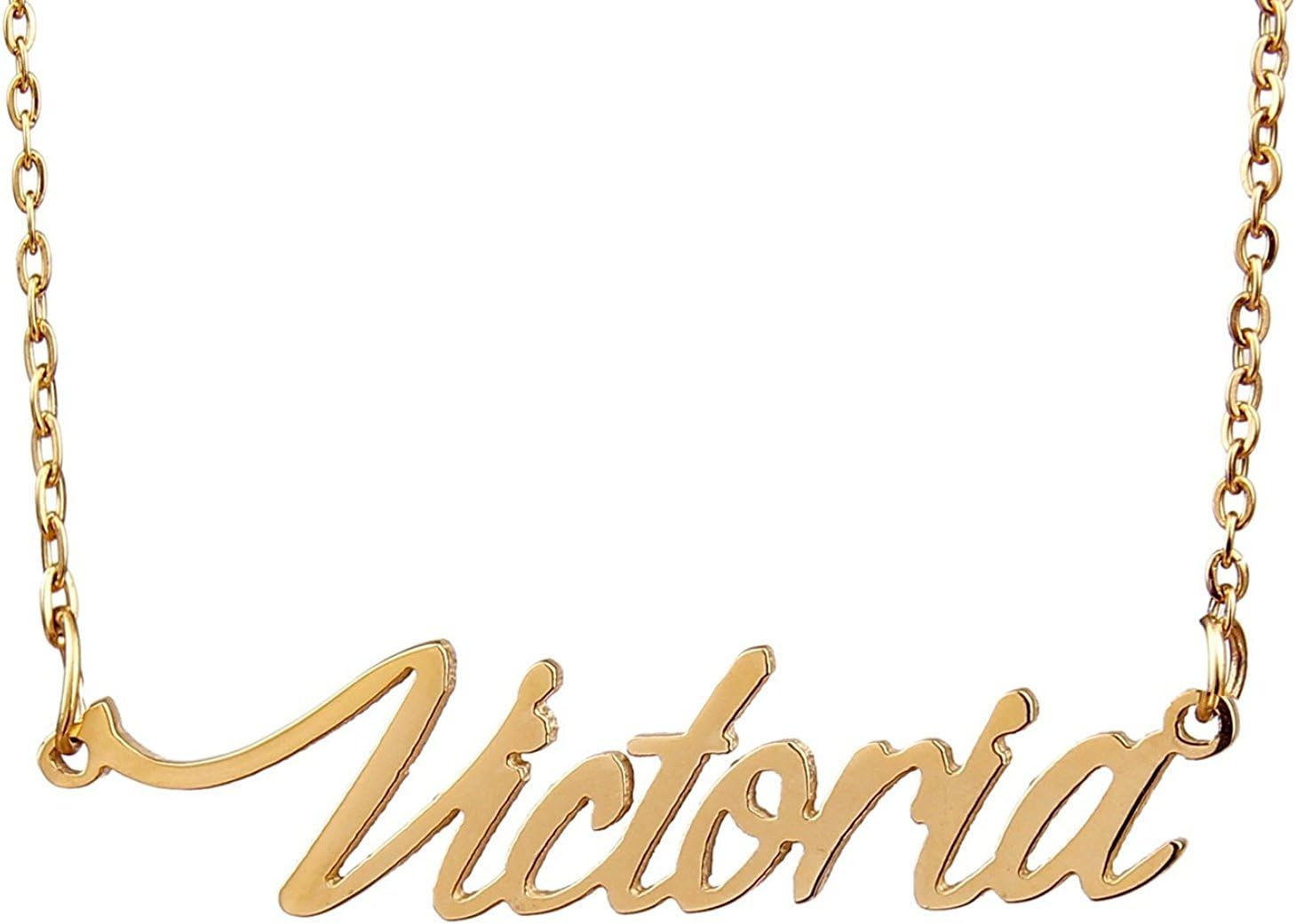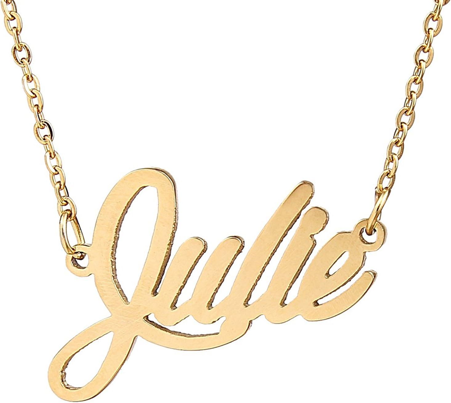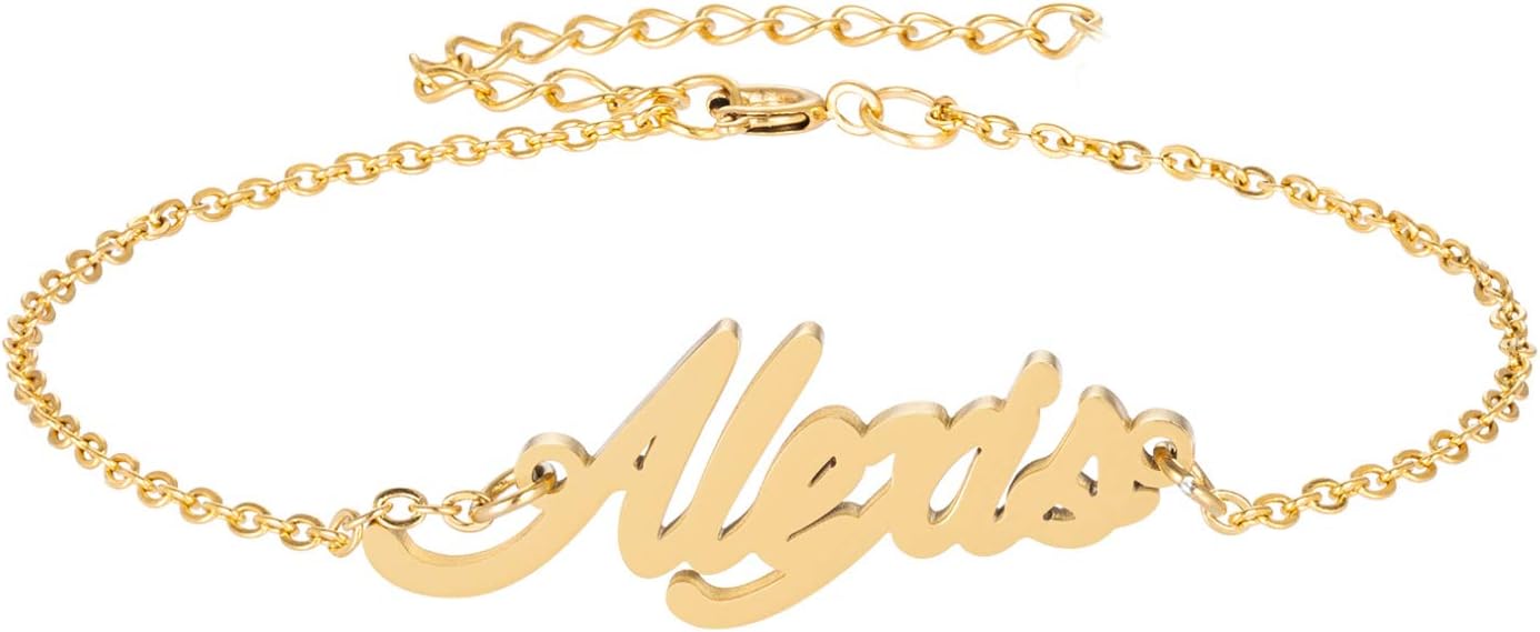 Specific Name Word in Golden Silver Color, Danity and Lightweight. Great gifts for best friends, mom, sister, grandaughter, cousin, wife, girlfriends. Product Details: Material: Stainless Steel, 18k Gold Plated. Chain length: 16" + 2" extension chain. Weight: 5-10 grams. Made in China.