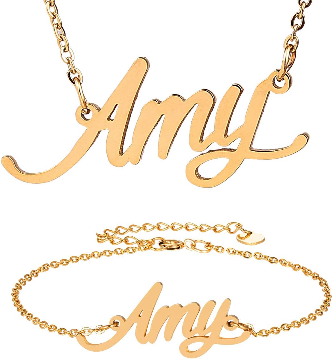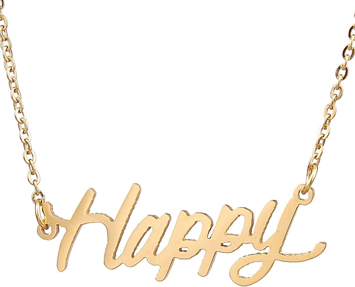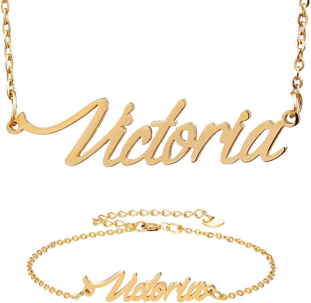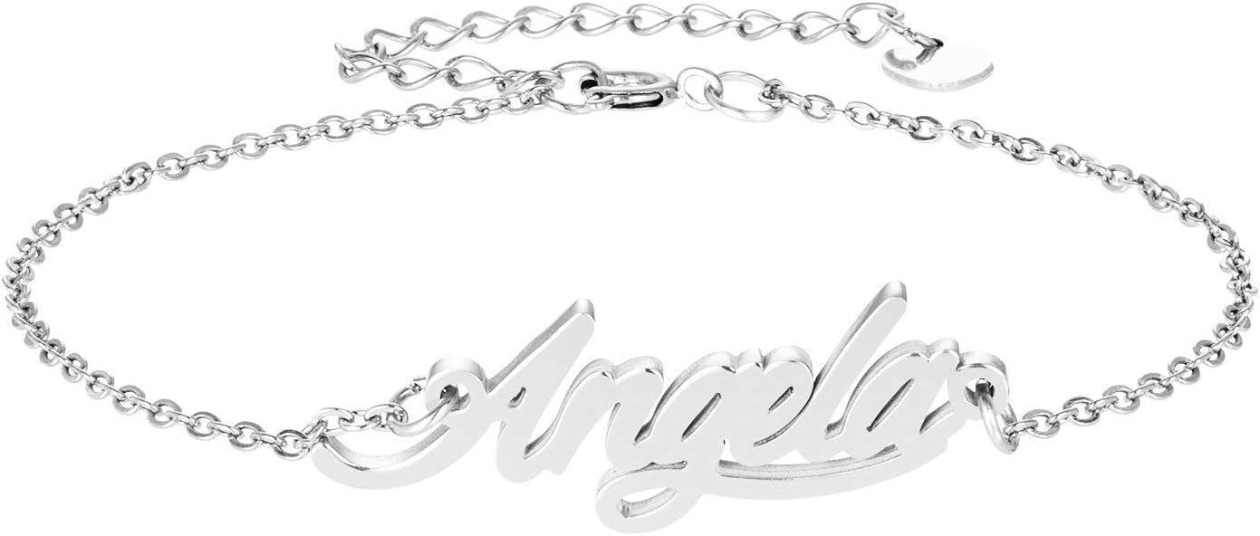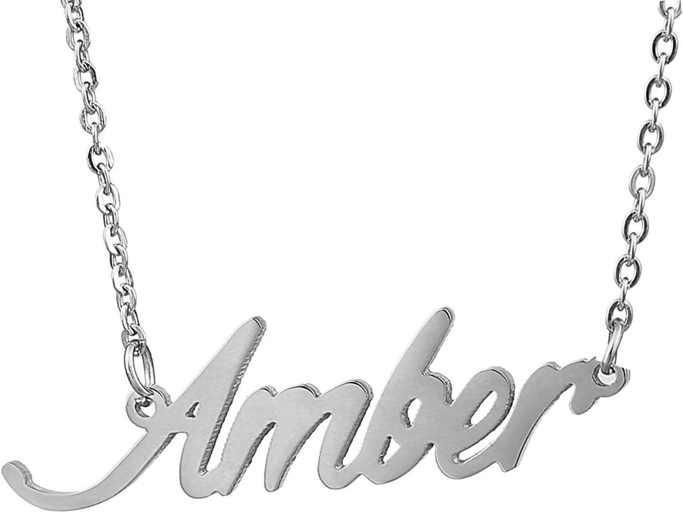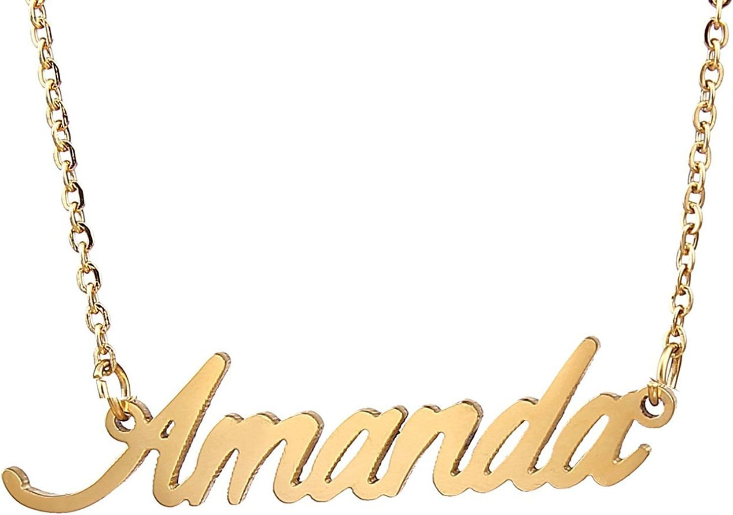 Specific Name Word in Golden Silver Color, Danity and Lightweight. Great gifts for best friends, mom, sister, grandaughter, cousin, wife, girlfriends. Product Details: Material: Stainless Steel, 18k Gold Plated. Chain length: 16" + 2" extension chain. Weight: 5-10 grams. Made in China.