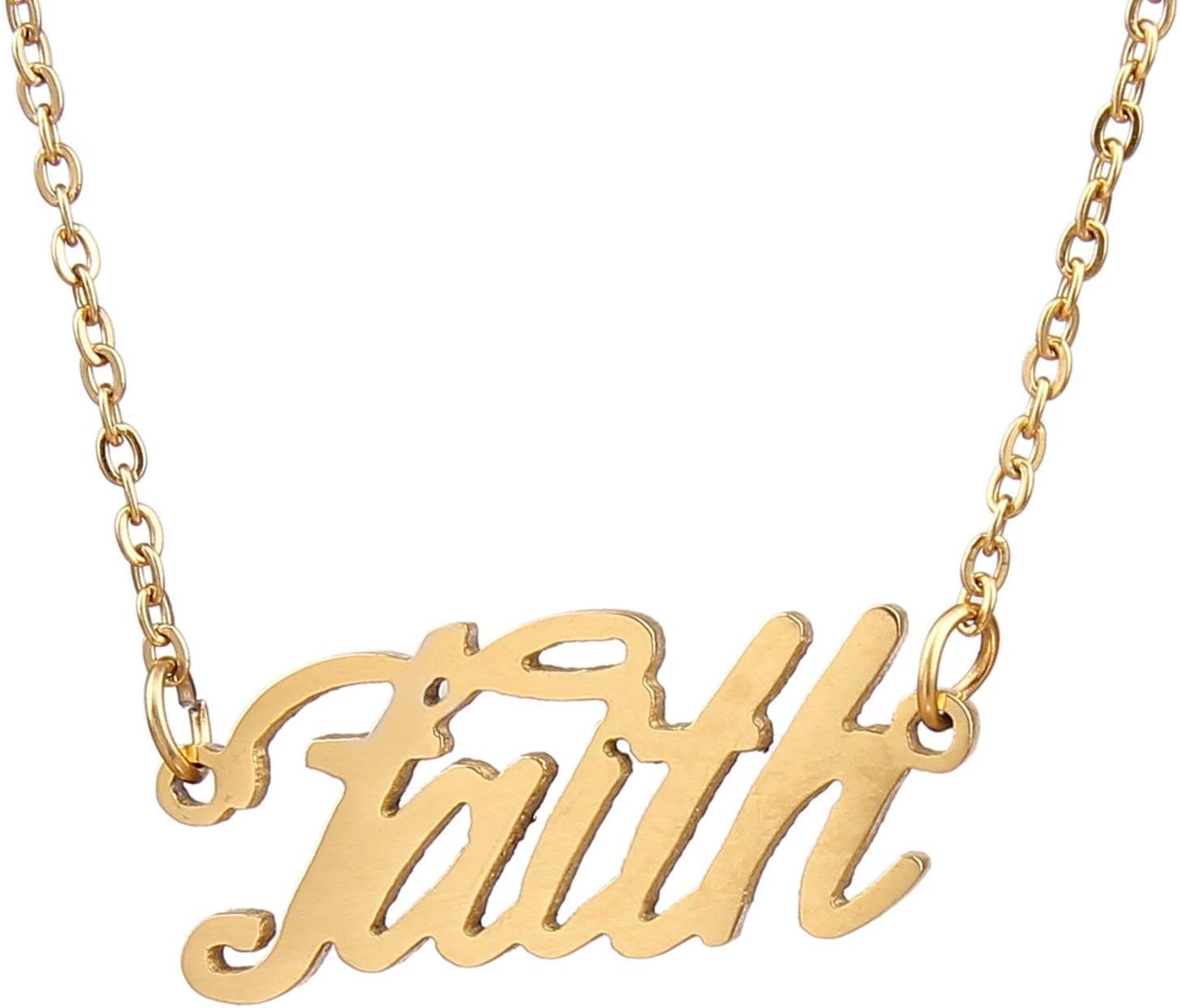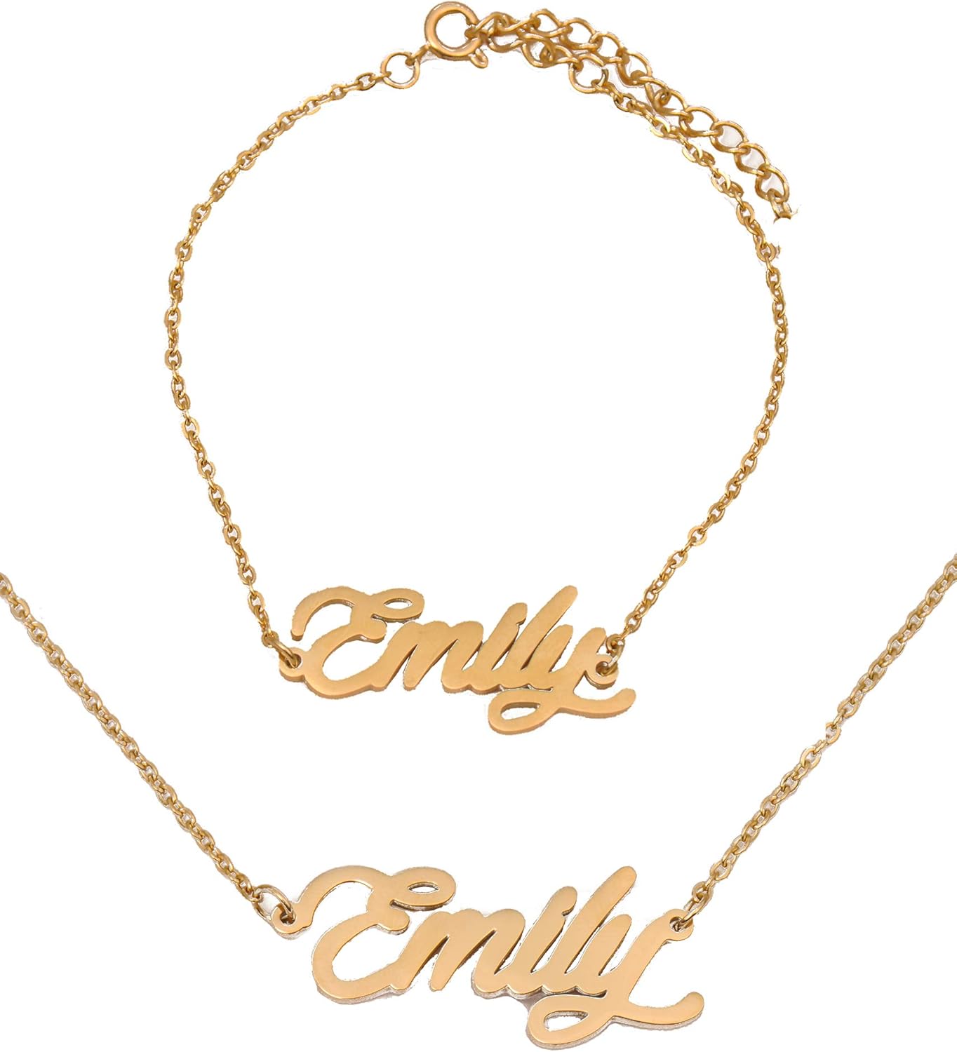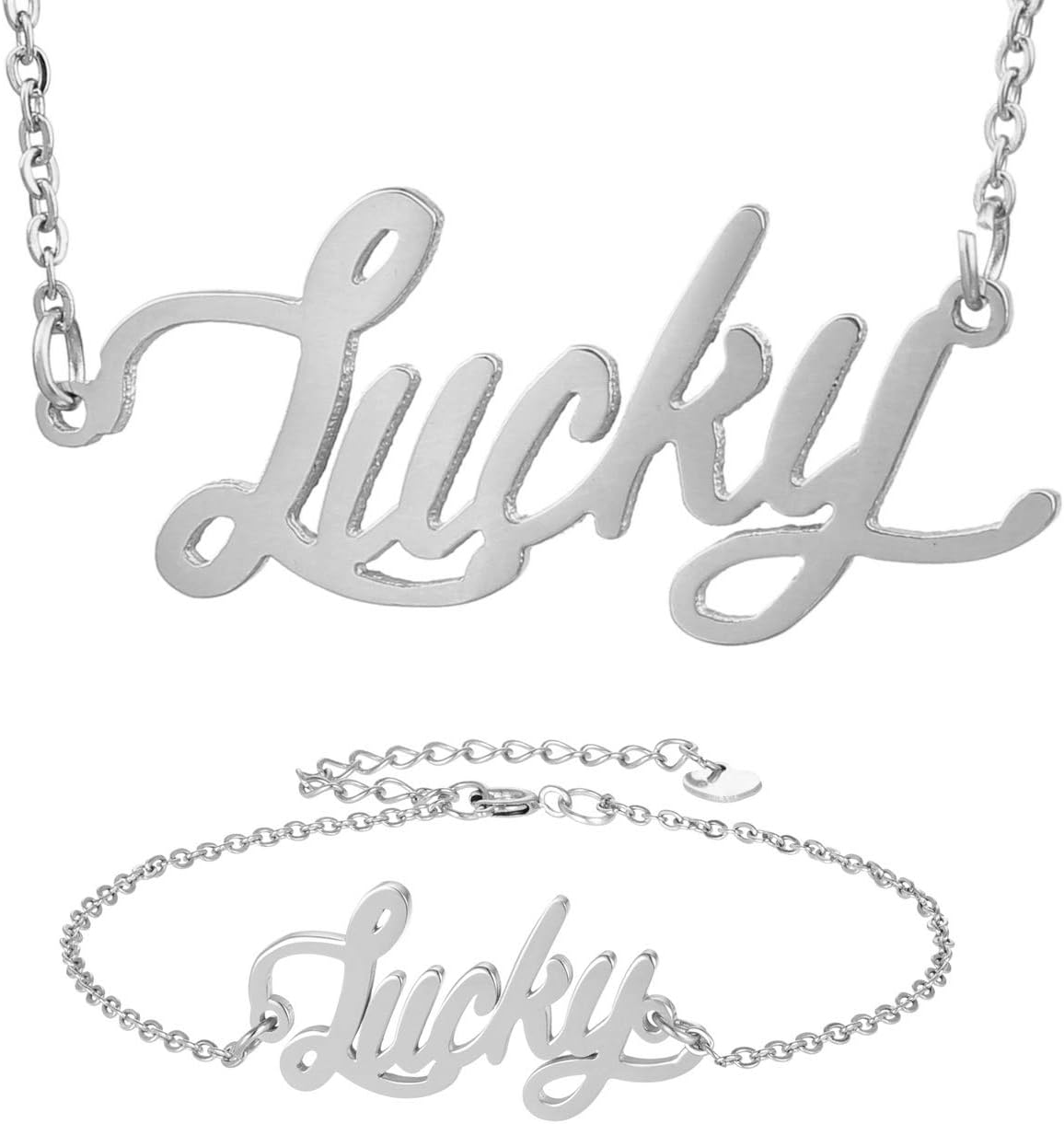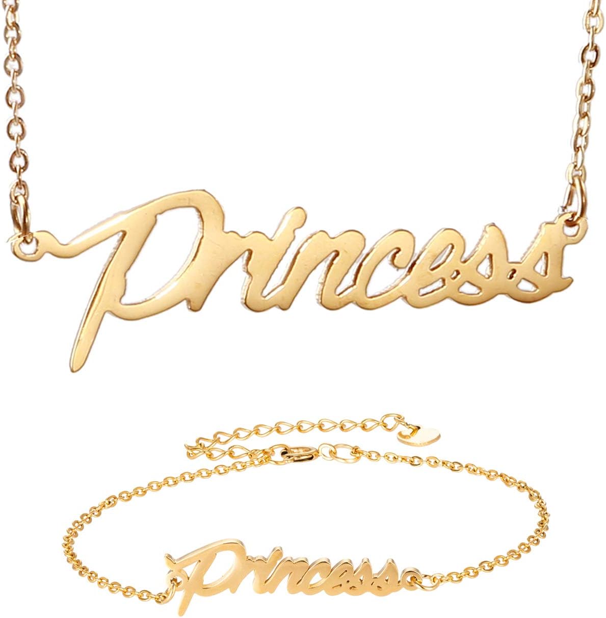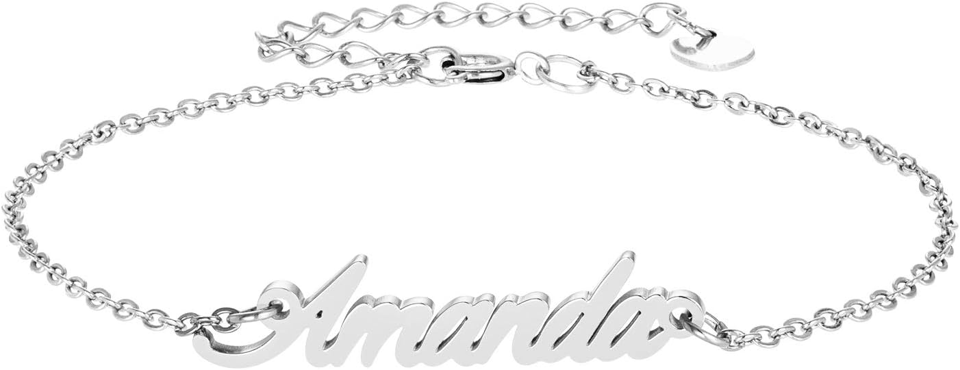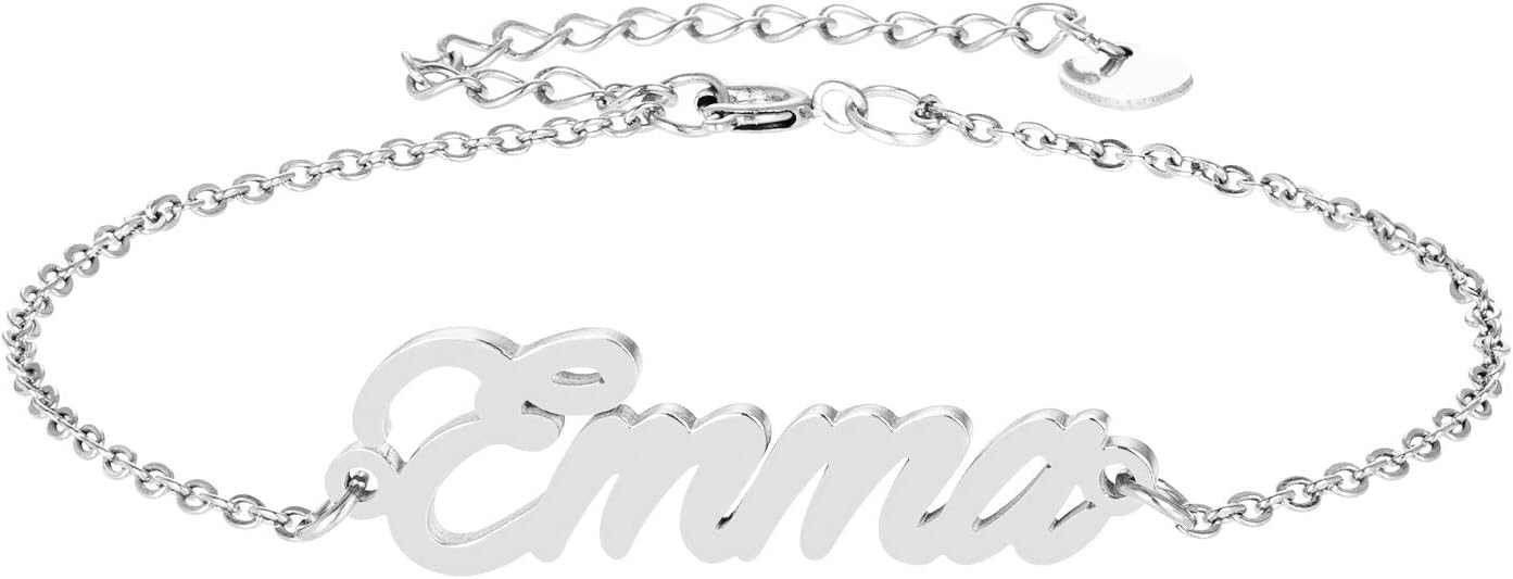 Specific Name Word in Golden Silver Color, Danity and Lightweight. Great gifts for best friends, mom, sister, grandaughter, cousin, wife, girlfriends. Product Details: Material: Stainless Steel, 18k Gold Plated. Chain length: 16" + 2" extension chain. Weight: 5-10 grams. Made in China.