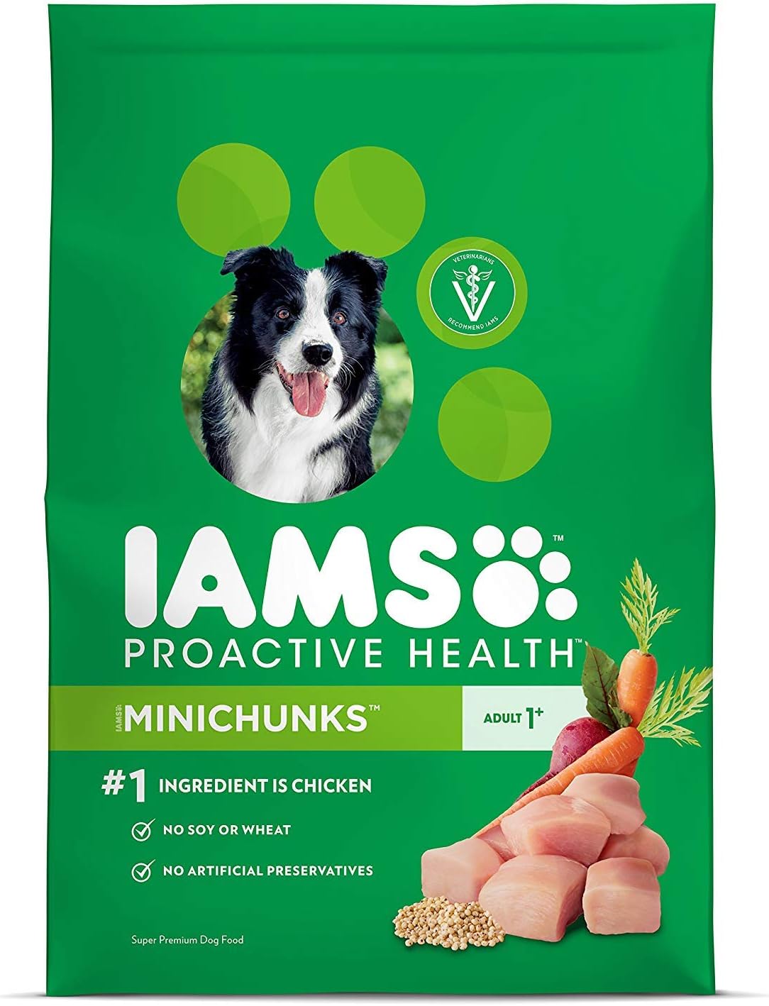 Your dog is one-of-a-kind that's why IAMS makes a dry dog food that's just as unique as they are. IAMS Adult Minichunks Small Kibble Dry Dog Food with Real Chicken gives your lovable adult dog the nutrition they need in the small kibble size they prefer. With real, farm-raised chicken as the first ingredient, this adult dog food supports healthy digestion with a wholesome blend of fibers and prebiotics. Plus, the smaller dog kibble promotes strong muscles with a premium-sourced protein. When you feed your dog IAMS dry food, you can feel good knowing they're getting the nutrition they need to bring out their unique best.