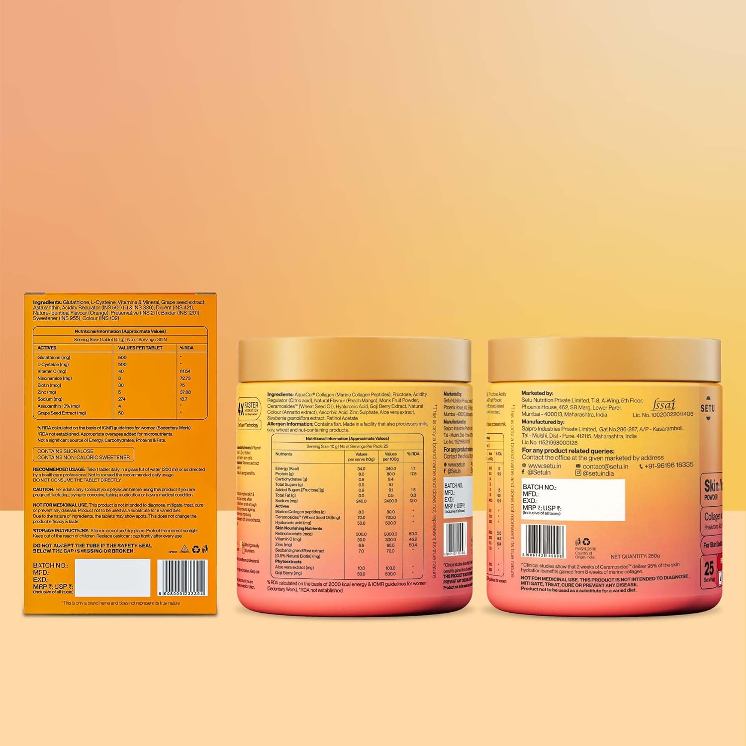 | Model Name | Setu Radiant Skin: Combo contains 8g Marine Collagen + Ceramosides & 8-in-1 Glutathione Fizzy Tabs | Supports Radiant, Healthy Skin | For Men & Women |