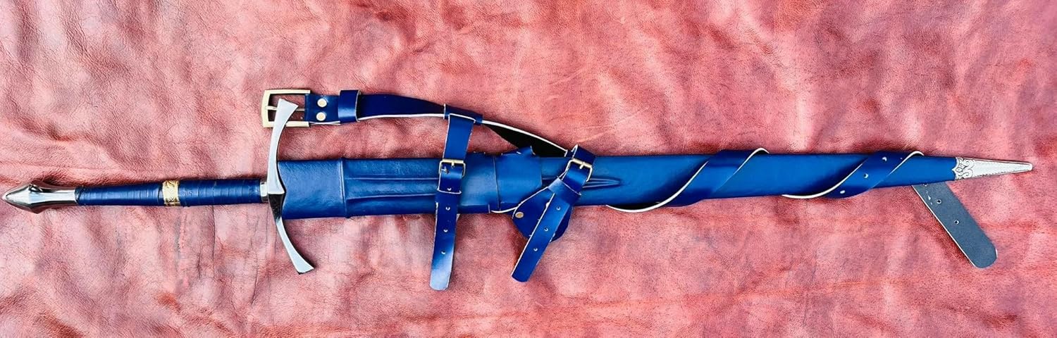 36 inch Full Tang Carbon Steel Long Sword. This exceptional blade is a fusion of historical craftsmanship and contemporary design, meticulously balanced and expertly tempered for exceptional performance. Crafted from high-grade carbon steel, this sword boasts remarkable durability and edge retention. Its full tang construction ensures unwavering strength and stability with every swing. The modern design pays homage to Viking history while embracing the demands of today's survival scenarios. *Hand forged in Nepal By EGKH *5160 Leaf spring from Truck is used for Blade and Rosewood is used for Handle with Leather wrap. * Razor sharp Ready to use. * 36 inches Blade *Survival Viking Sword * 12 inches full tang Handle-Made of Rosewood * 2.5 inches Belly * 1.790 grams Wight *Perfect Gripe-2 hand handling *Material Used: High-Grade Carbon Steel (Car & Jeep Spring Leaf), *Type : Full tang *Overall Length: Approximately 48 inches from Blade Tip to Handle Pommel *Scabbard is made of wood cover in leather.