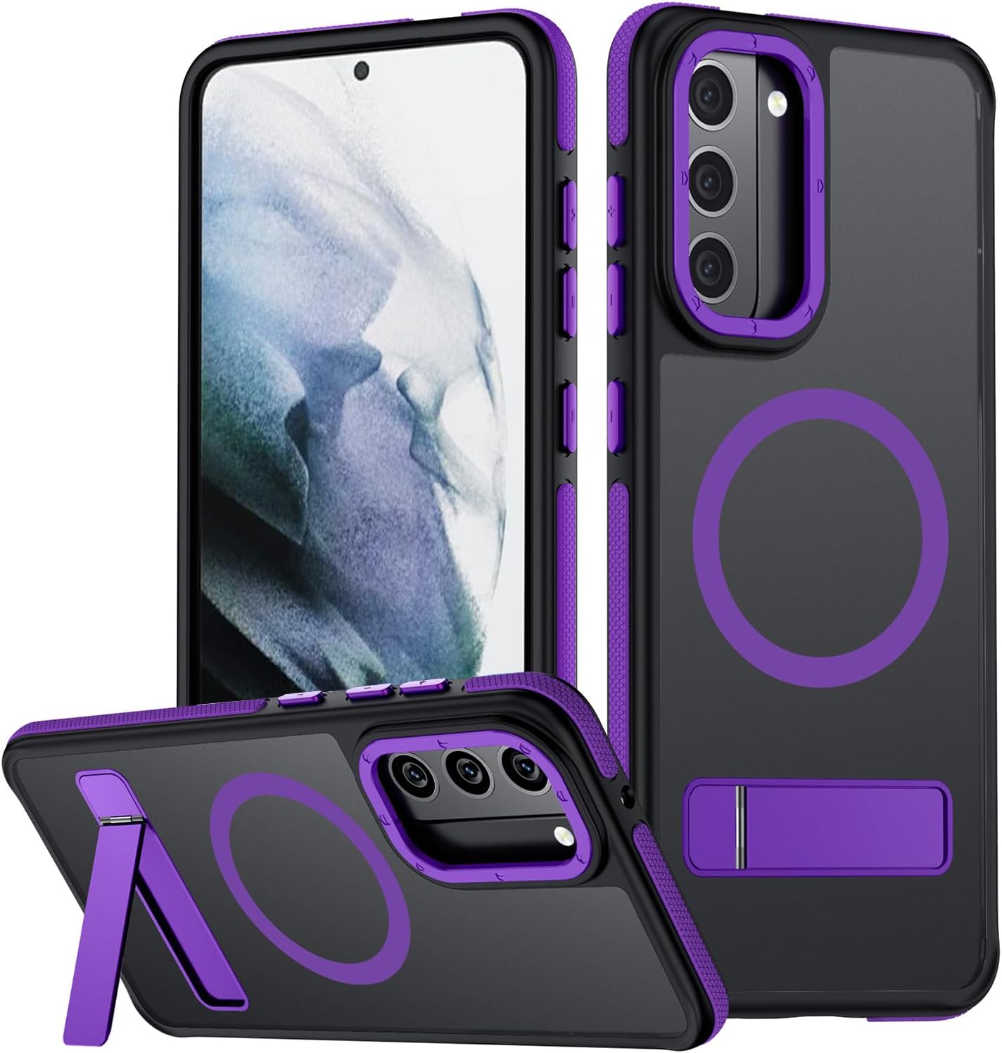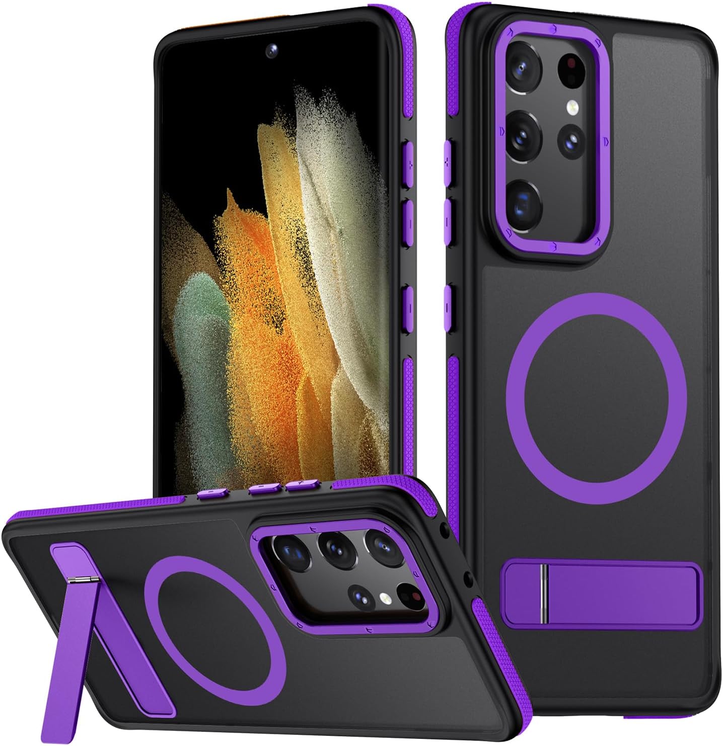 for Samsung Galaxy S21 Ultra Case, [Compatible with MagSafe], Adjustable Kickstand,Military Grade Drop Tested, Translucent Matte Phone Case for Galaxy S21 Ultra Case (Black)