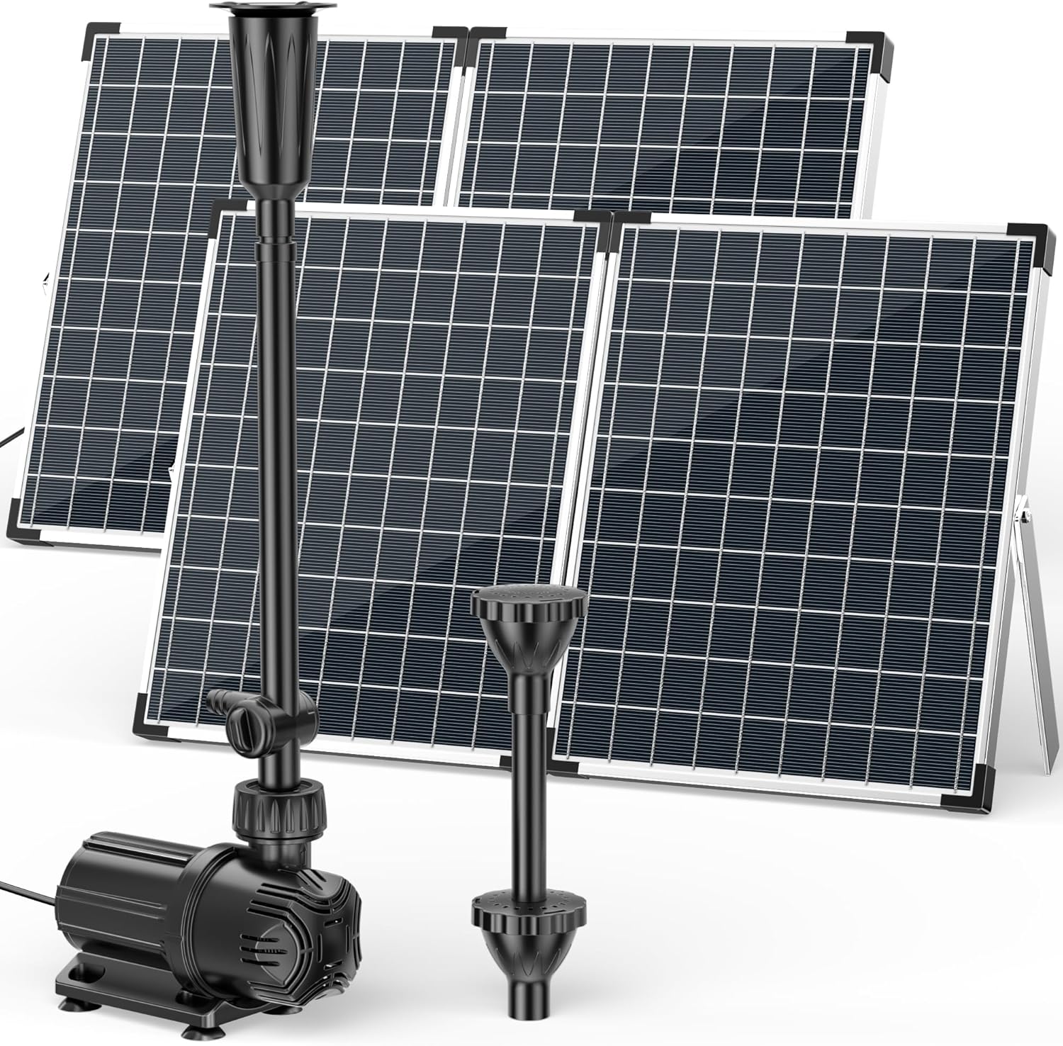 | Included Components | 1* 1600GPH Solar Water Pump, 1*Y Branch Parallel Cable, Fountain Nozzles Kit, Solar Panel x2, User Manual |